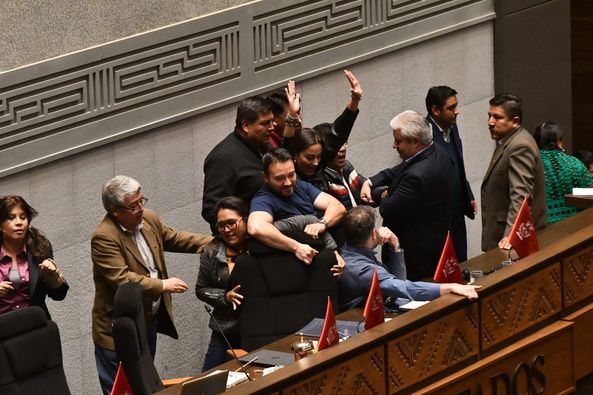 El problema surgió cuando los denominados radicales y opositores pretendieron cambiar el orden del día, para tratar primero los proyectos de ley 073 y 075 de cesación de funciones de magistrados.