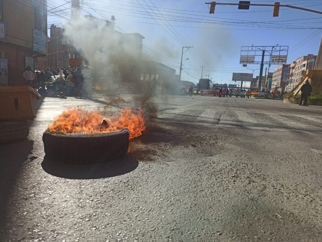 La mañana de este lunes, gremiales decidieron bloquear al menos seis puntos en la ciudad de El Alto. Denunciaron que el dirigente de la Federación de gremiales, Rodolfo Mancilla, acordó una extorsión hasta de Bs 7.000 para que el director de ferias y mercados del municipio de vía libre a las patentes que tramitan.