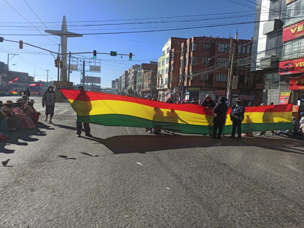 Gremiales bloquean a la altura del puente de La Ceja, ingreso al aeropuerto internacional de El Alto.