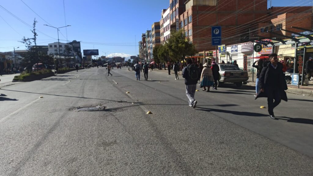 RED ALTO NIVEL realizó un recorrido por diferentes puntos y cuantificó que son seis los lugares de bloqueo, el primero es a la altura de Chacaltaya; la avenida Juan Pablo II, altura Cruz Papal; ingreso la autopista; cruce a Viacha; y finalmente la Ballivián. Un grupo de gremiales se apostó en el ingreso a la Dirección de Ferias y Mercados del municipio alteño.
