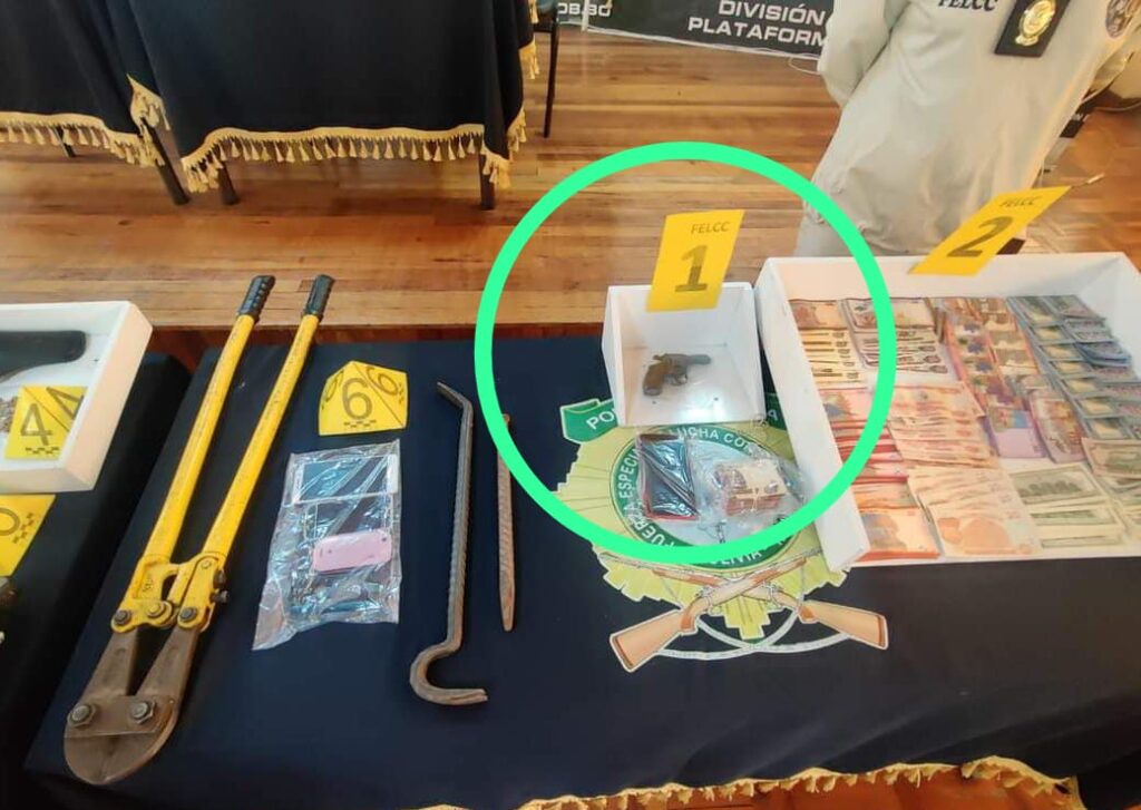 Después de indagar a los aprehendidos se realizó un segundo operativo donde aprehendieron a María Natividad Callisaya, tras un registro al inmueble que habitaba se encontró un arma de fuego y municiones, un vehículo Toyota Hilux sin placas, combustible, placas de vehículos con diferentes numeraciones 1506 – NIX, 1205 – AXX.