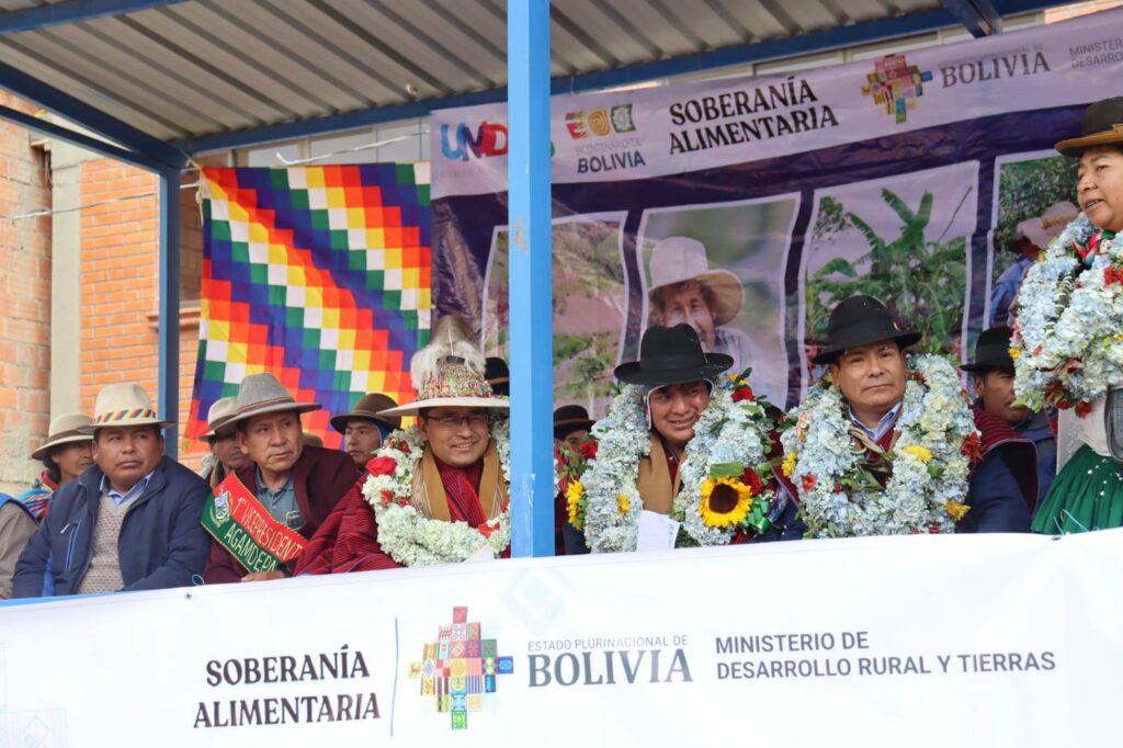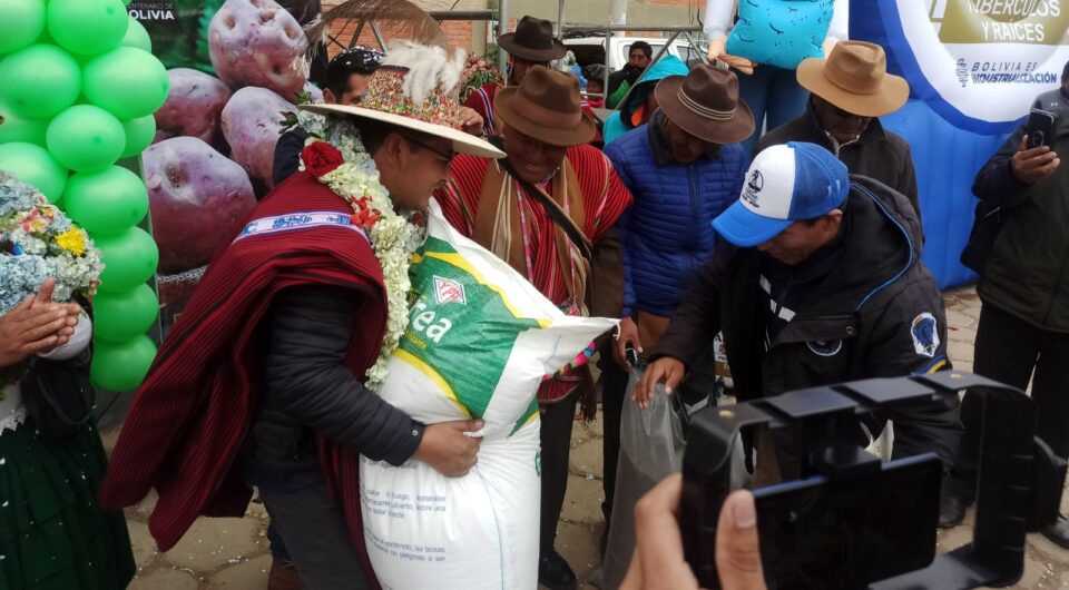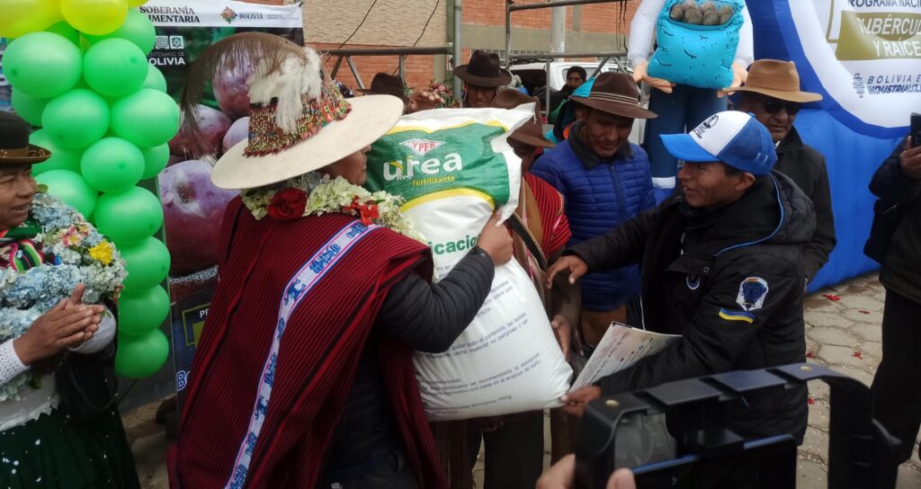 𝗥𝗲𝗱 𝗔𝗹𝘁𝗼 𝗡𝗶𝘃𝗲𝗹 (𝗥𝗔𝗡) 𝟮𝟬 𝗱𝗲 𝗷𝘂𝗻𝗶𝗼 𝟮𝟬𝟮𝟰.- La jornada de hoy se desarrolló un acto importante en la localidad de Calamarca. La institución Pública Desconcentrada Soberanía Alimentaria dependiente de Ministerio de Desarrollo Rural y Tierras, a través del Programa Nacional de Tubérculos y Raíces, entregó fertilizantes para potenciar la producción de papa semilla y papa consumo.