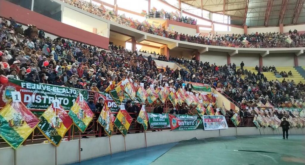𝗥𝗲𝗱 𝗔𝗹𝘁𝗼 𝗡𝗶𝘃𝗲𝗹, 𝟰 𝗱𝗲 𝗻𝗼𝘃𝗶𝗲𝗺𝗯𝗿𝗲 𝗱𝗲 𝟮𝟬𝟮𝟱.– La dirigencia de la Federación de Juntas Vecinales de El Alto (Fejuve), encabezada por David Callisaya, decidió prorrogar su mandato hasta los primeros meses de 2026, para luego convocar al XXIII Congreso Vecinal, donde se elegirá a los nuevos representantes.