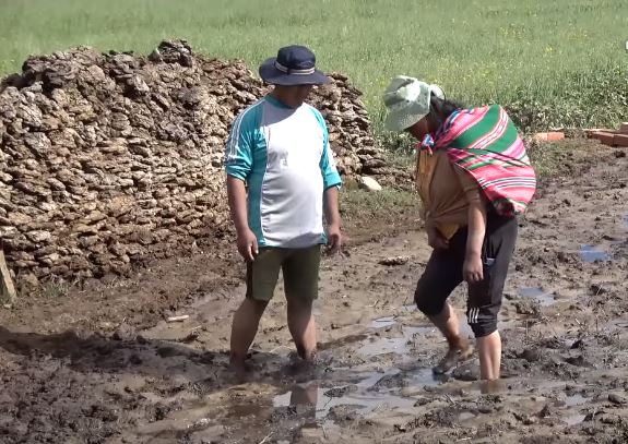 Juana (nombre convencional) tiene el buzo remangado hasta la rodilla, camina lentamente porque sus pies se hunden en el lodo que está concentrado en el patio de su casa de la comunidad Chahuira Pampa del municipio de Achacachi, el techo de su casa está quebrado y la calamina caída.